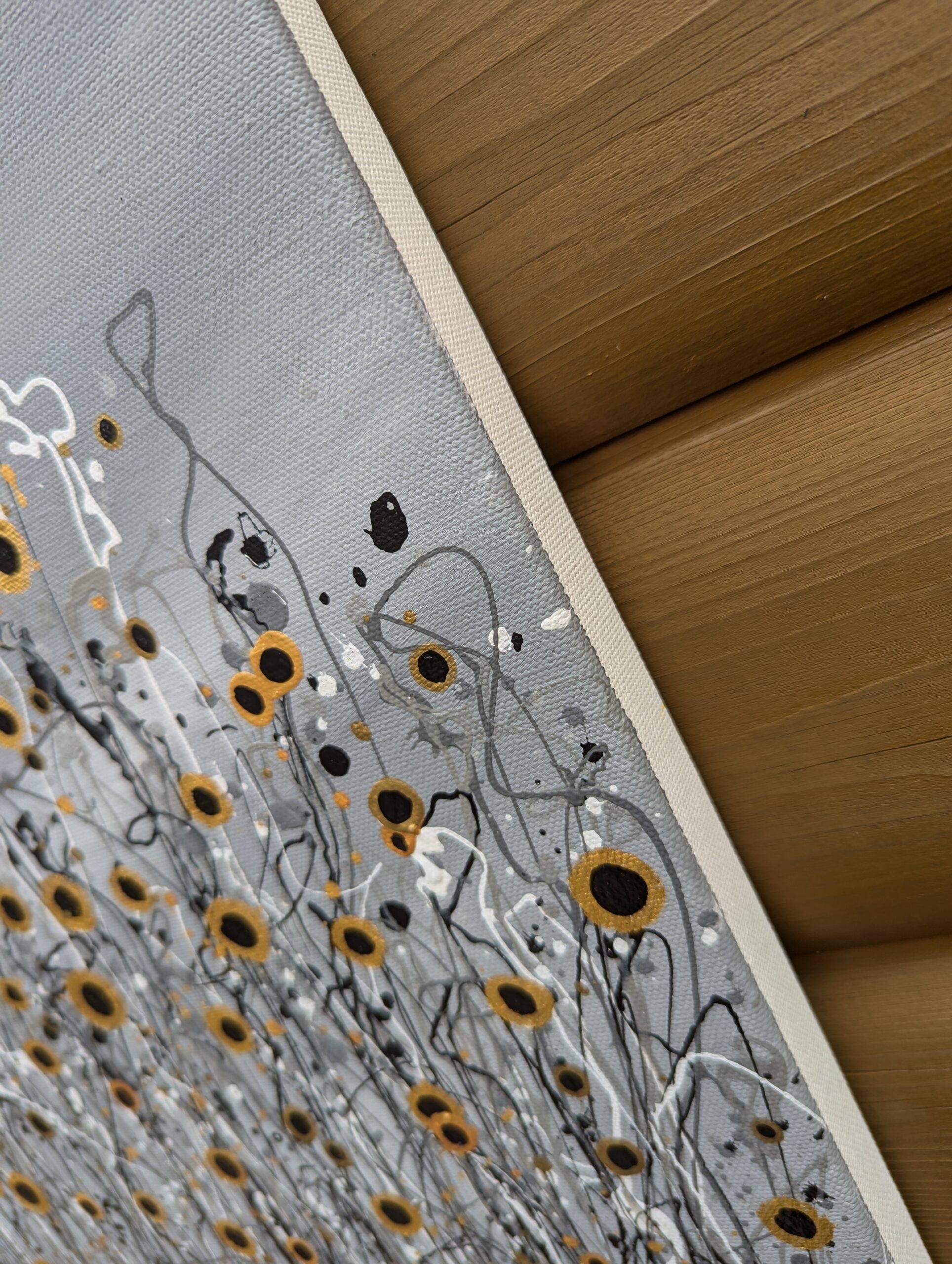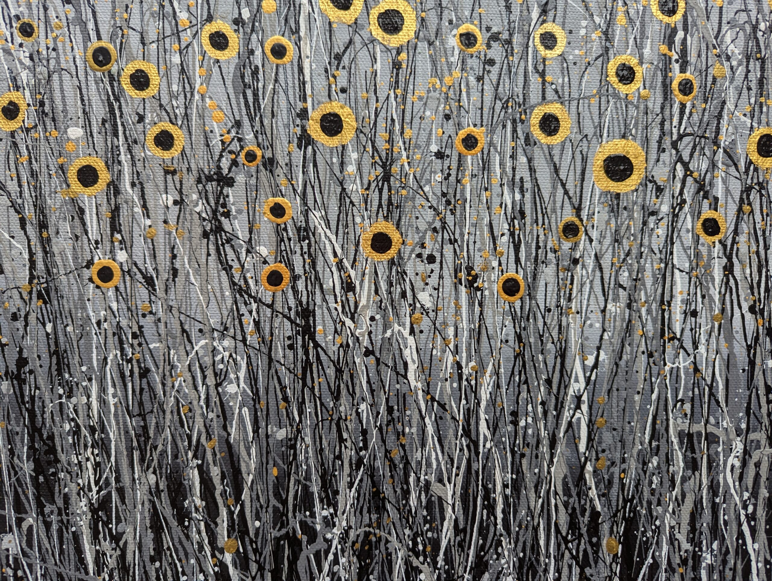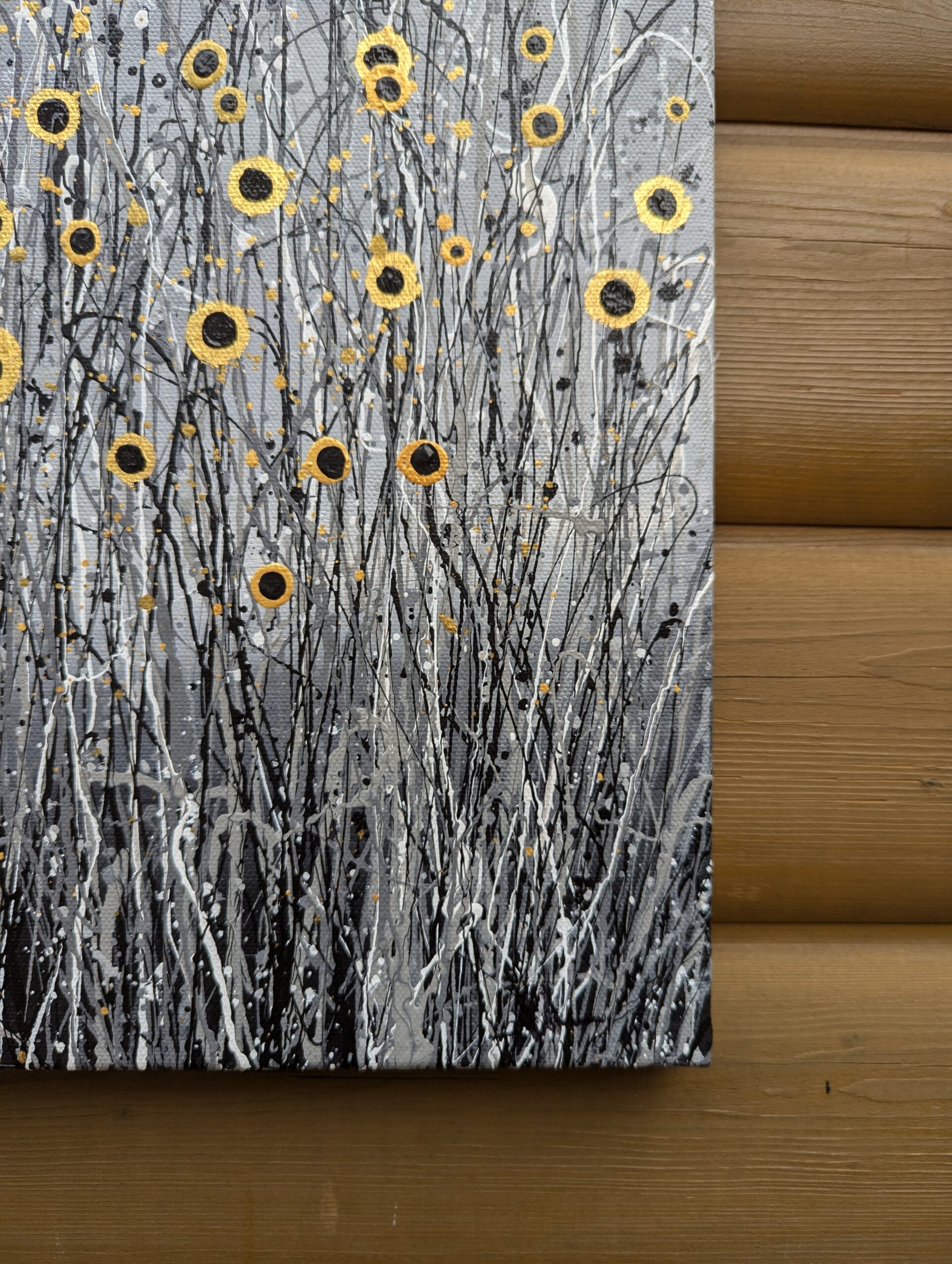 A Place To Dream #2 – Abstract strokes and impressionist flair merge, crafting an effervescent of 23ct golden floral delights.