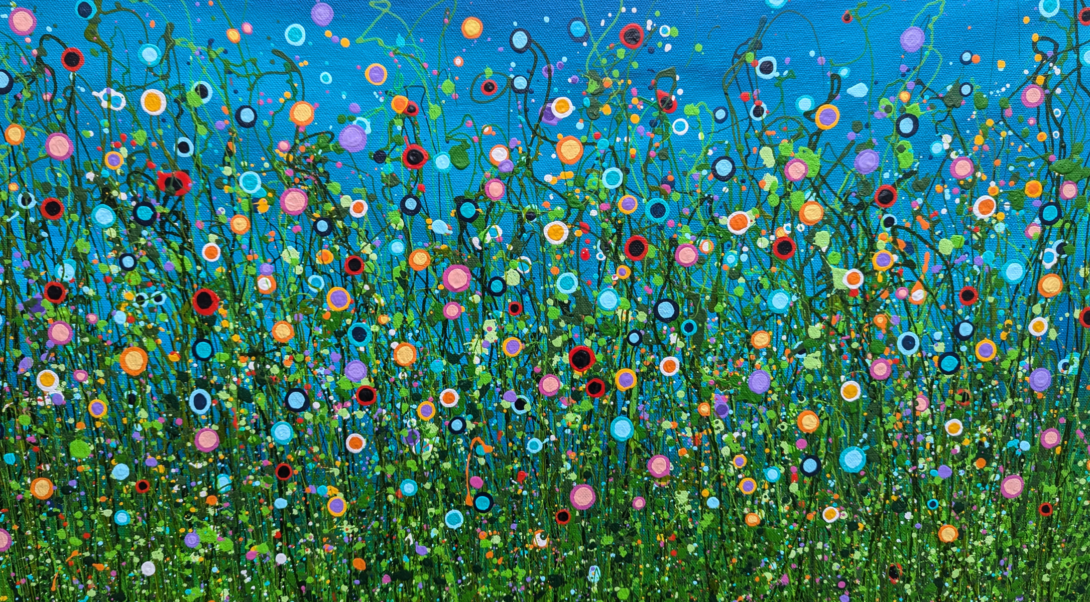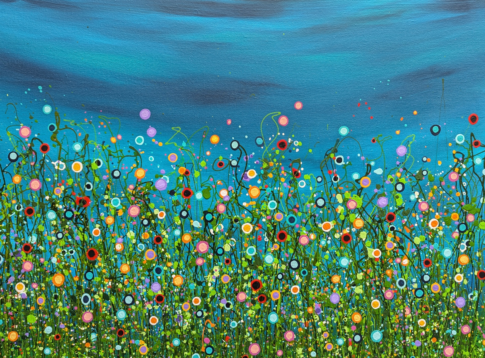 Bring a little of the outside inside with this turquoise abstract meadow. Created using my signature string grass. For more similar work check out the rest of my vibrant meadows.
