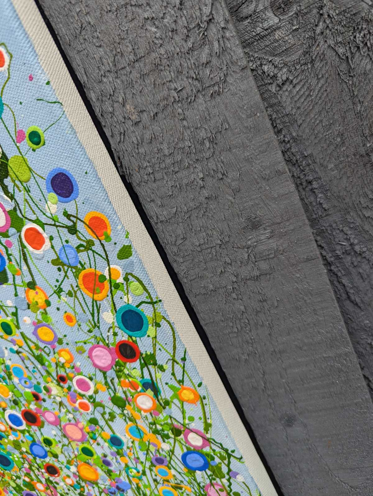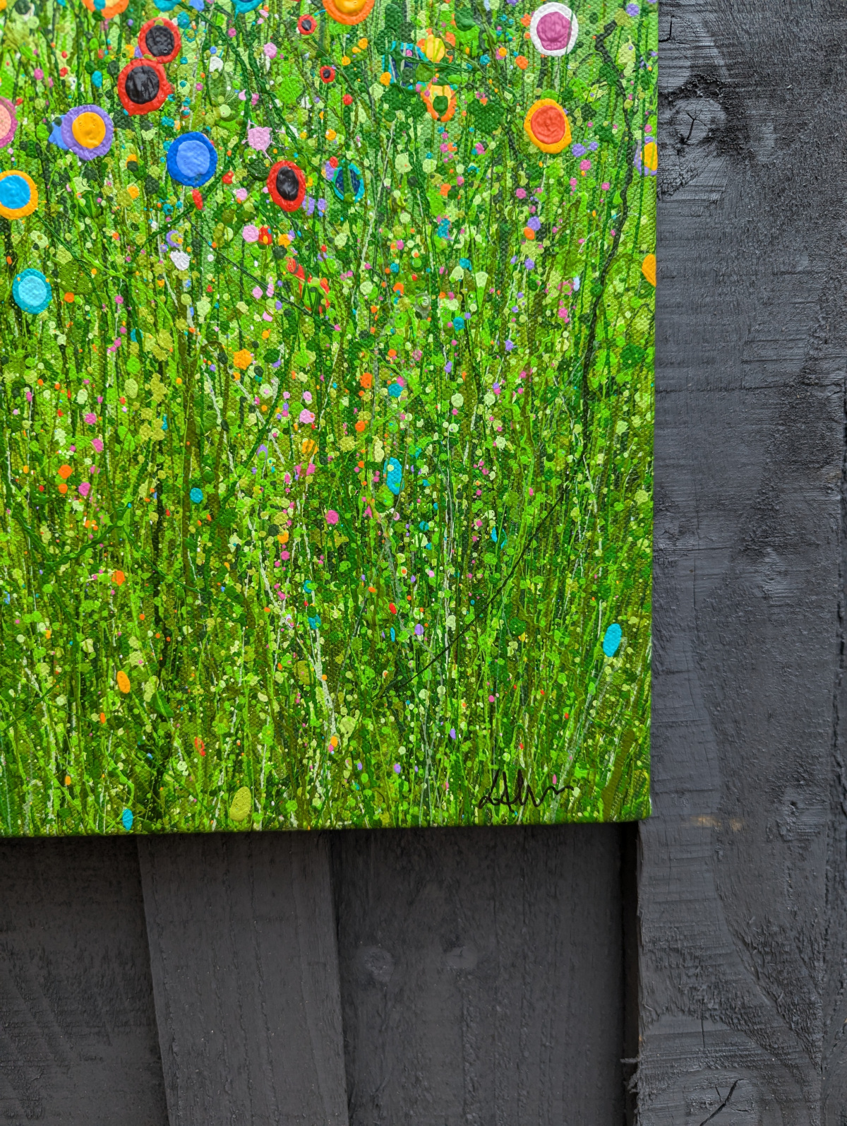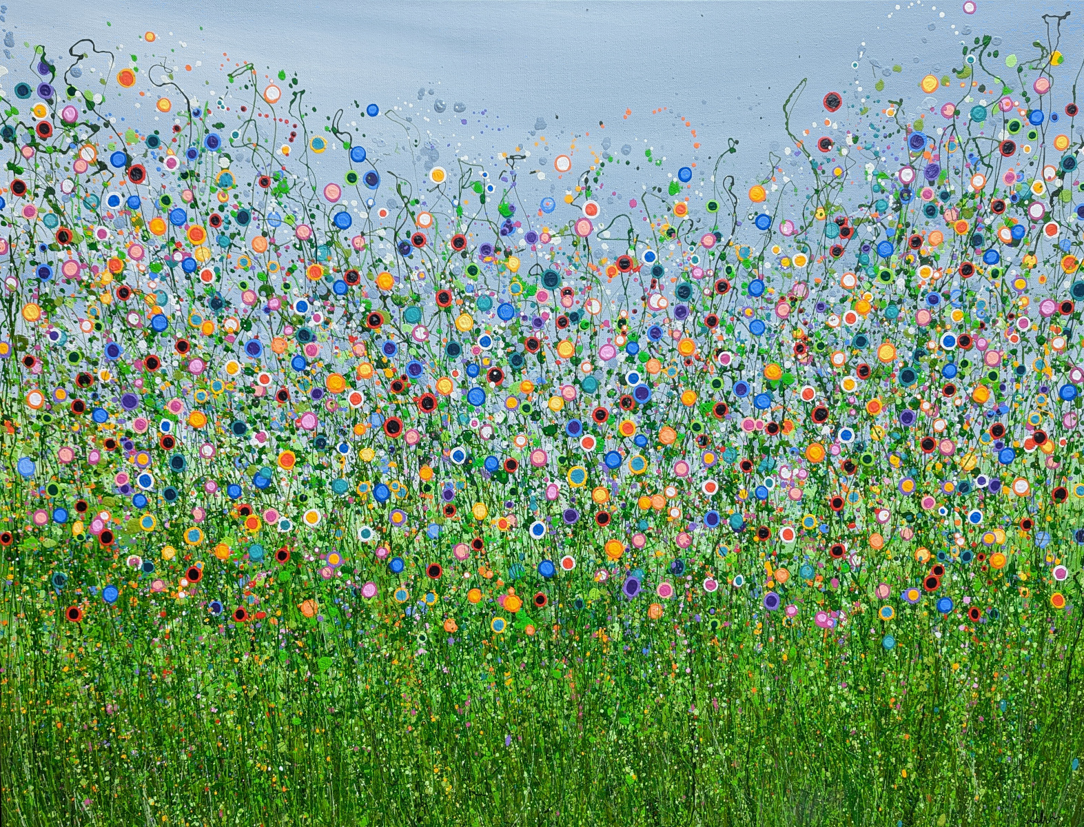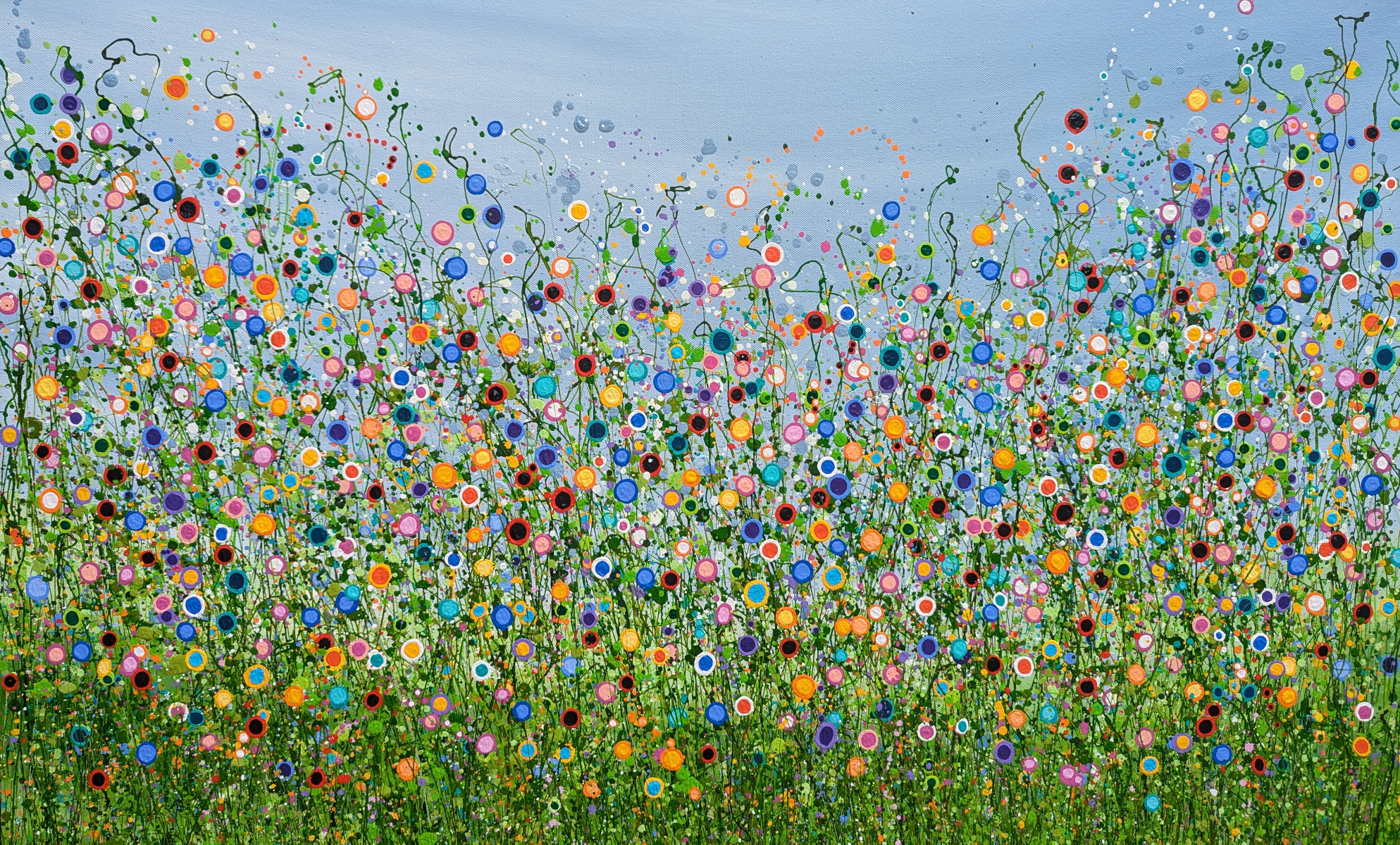This painting is a vibrant celebration of nature’s spontaneity and beauty, depicted through energetic splashes of color and dynamic, abstract forms